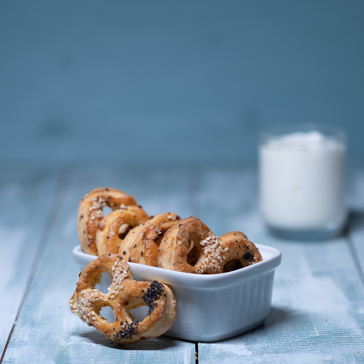 Covrigei de casă fragezi cu brânză telemea, mac și susan.